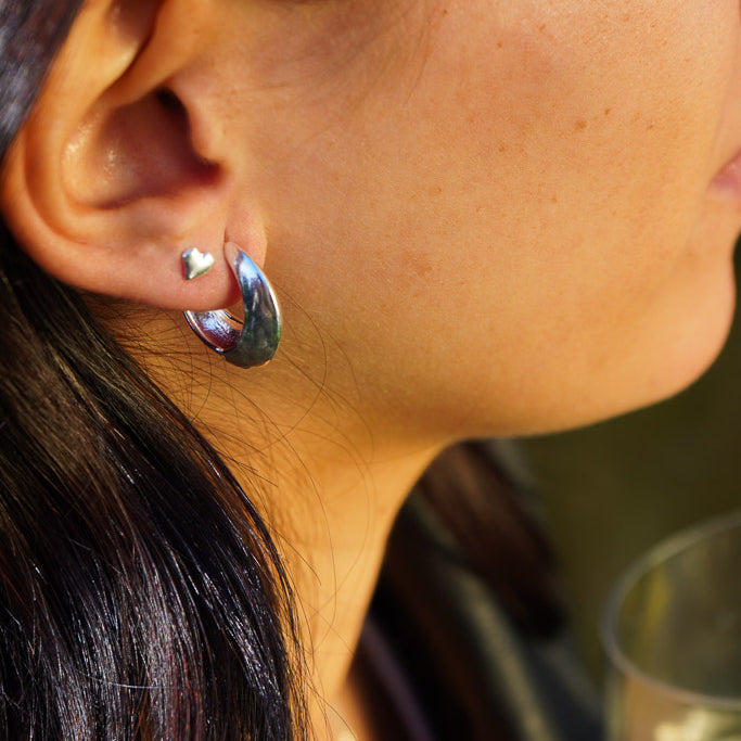 AROS CORAZÓN MINI INCLINADO ENCHAPE PLATA
