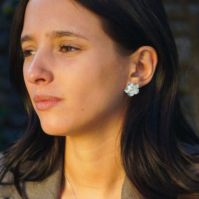 AROS FLOR AGUSTINA ENCHAPE PLATA