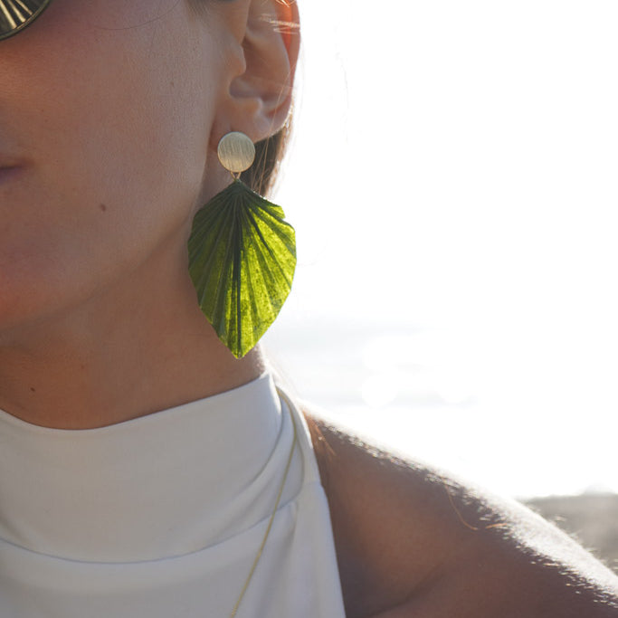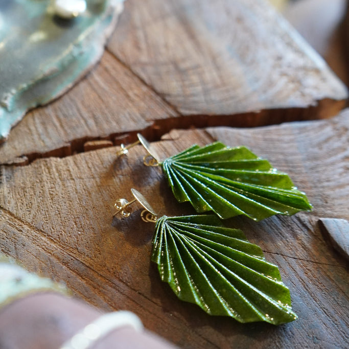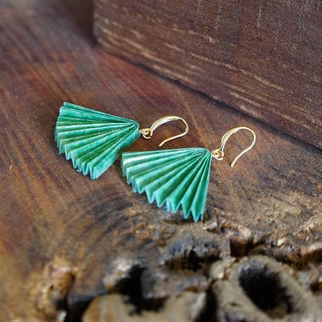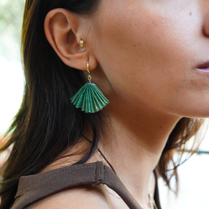 AROS ABANICO ORIGAMI VERDE ENCHAPE ORO