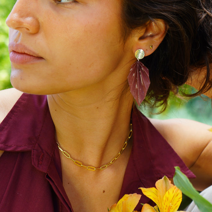 AROS ABANICO ORIGAMI ROJO ENCHAPE ORO