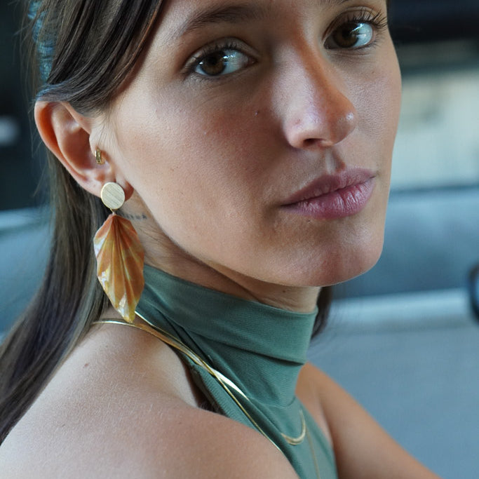 AROS HOJAS ORIGAMI AMARILLO ENCHAPE ORO