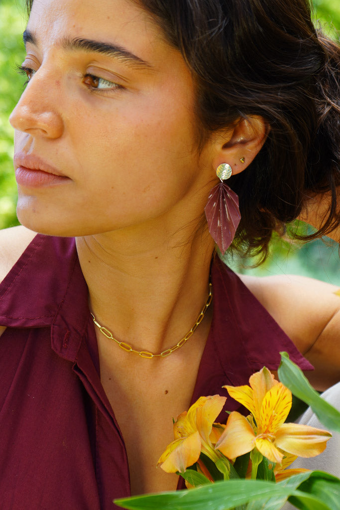 Aros artesanales con forma de hojas, creados a mano en Chile utilizando la técnica ancestral del origami. Confeccionados en papel impermeabilizado que permite usarlos con total tranquilidad en cualquier ocasión. Su ligereza los hace cómodos para llevar todo el día, mientras que los colores vibrantes y el enchape en oro añaden un brillo sutil y elegante. Perfectos para fiestas, eventos especiales o como regalo único y diferente que sorprenderá a quien lo reciba.