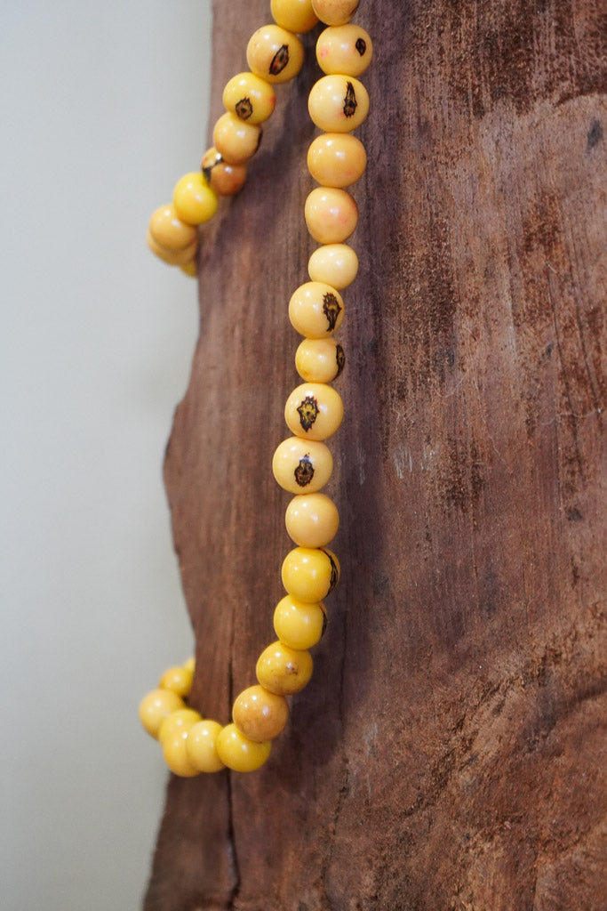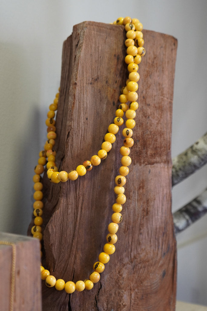 Este collar de cuentas en tonos amarillos irradia energía y alegría. Su diseño sencillo y natural lo convierte en un accesorio ideal para realzar cualquier look. Ligero y cómodo, está hecho a mano con atención al detalle, perfecto para quienes buscan un estilo fresco y auténtico.