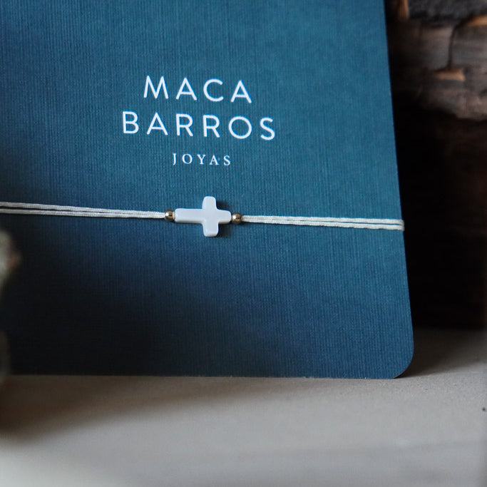 PULSERA CRUZ PLATA CAFÉ NIÑO