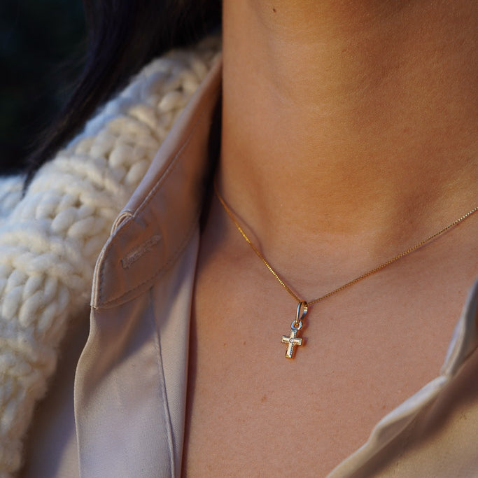 COLLAR MINI CRUZ CIRCÓN ENCHAPE ORO