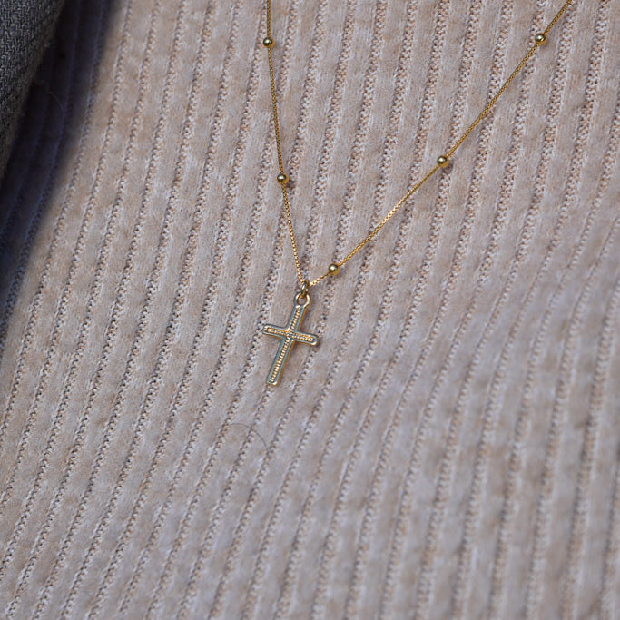 COLLAR CRUZ BOLITAS SEPARADAS ENCHAPE ORO