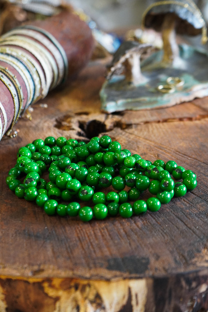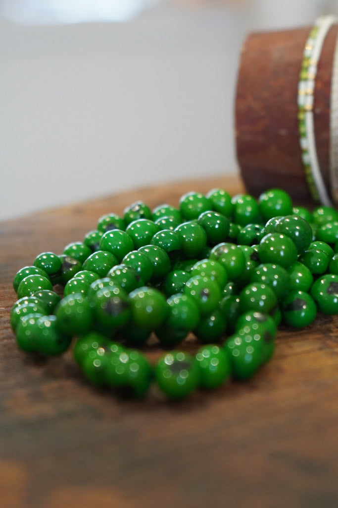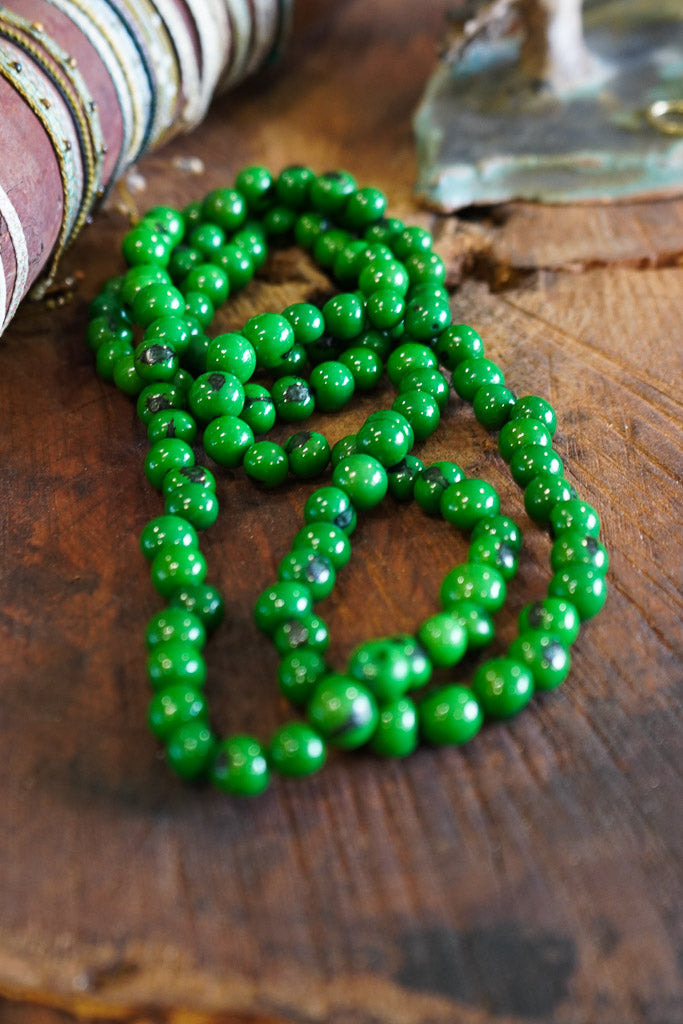 Hecho con semillas teñidas en un verde profundo. Es liviano pero no pasa desapercibido, ideal para levantar un look sencillo o acompañar un outfit más jugado. Un accesorio que suma sin esfuerzo.
