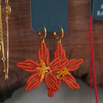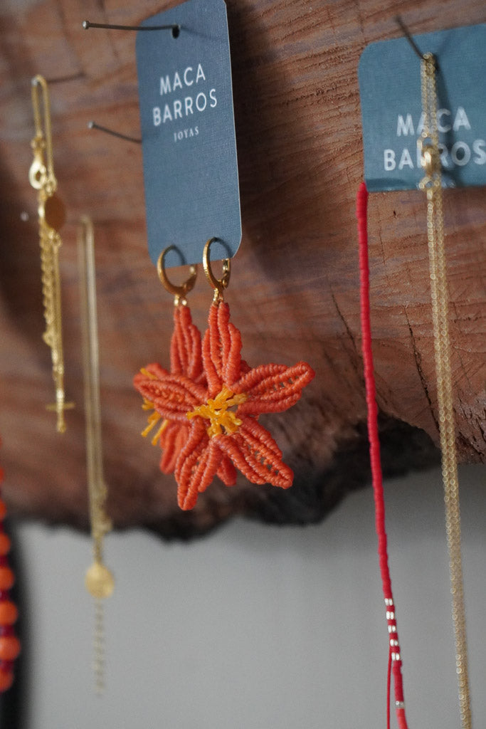 AROS MACRAMÉ FLOR NARANJA ENCHAPE ORO