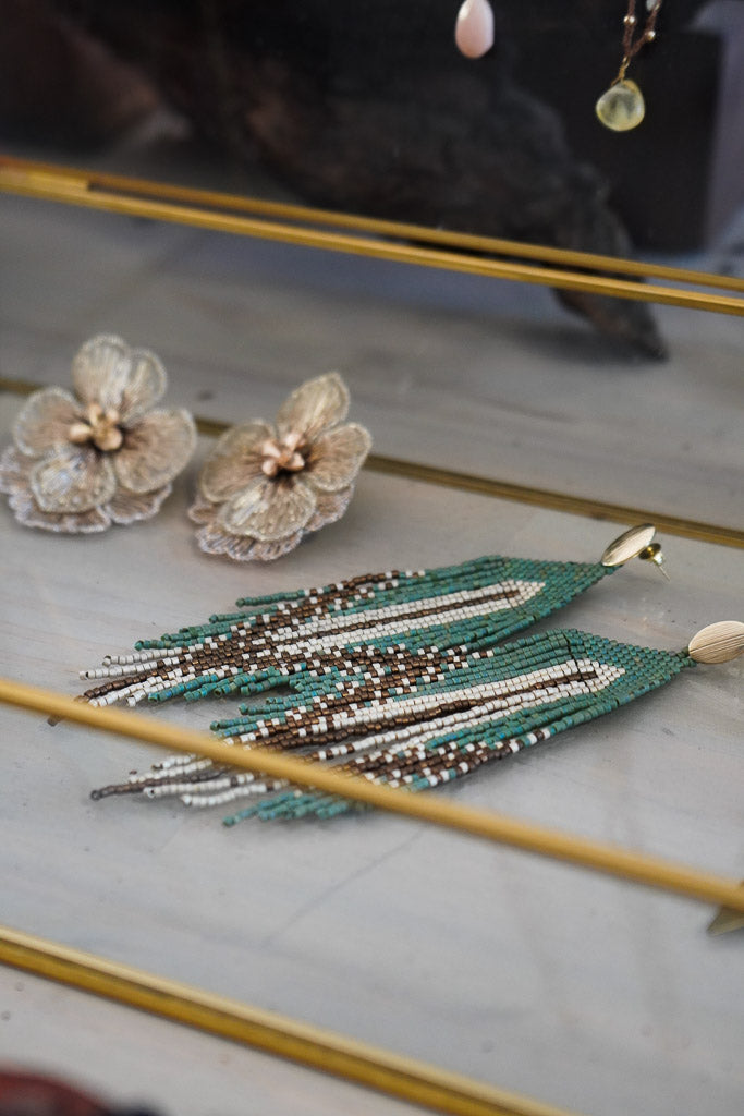 Ponle color y personalidad a tu look con estos entretenidos aros una base enchape oro y mostacillas, trabajo delicado hecho a mano por artesana Chilena