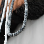 Collar elaborado con cuentas marmoladas de resina de alta calidad, inspiradas en la elegancia del mármol natural. Su diseño en tonos neutros le da un estilo sobrio y actual, perfecto para usar solo o combinar con otras piezas.