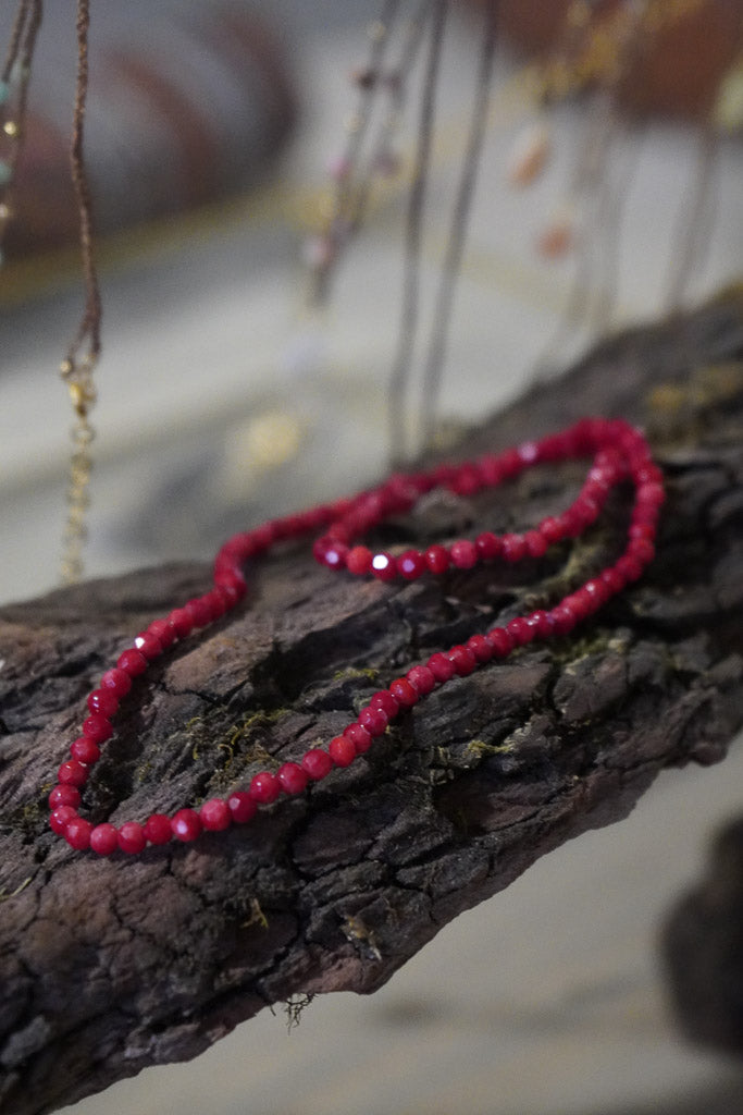 Este collar de piedras coral rojas naturales es puro estilo y energía. Sus tonos vibrantes resaltan cualquier look. Está hecho a mano con materiales de calidad, ideal para usar solo o combinarlo con otros collares.