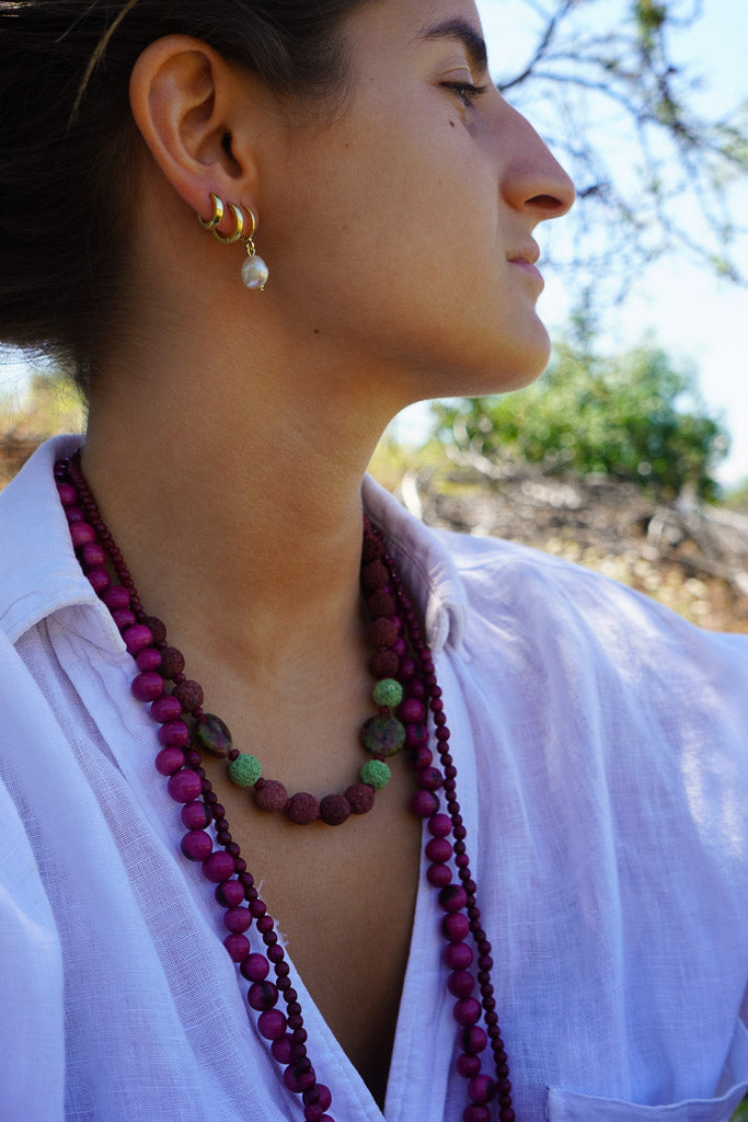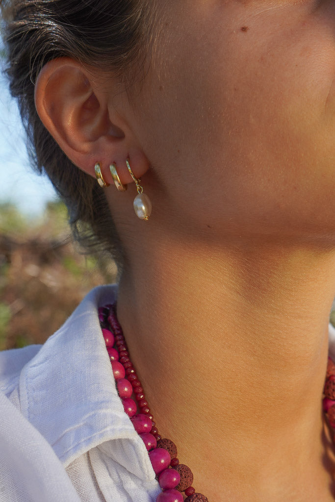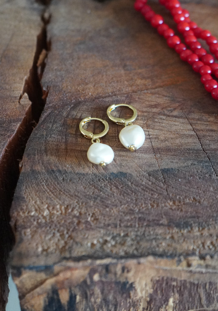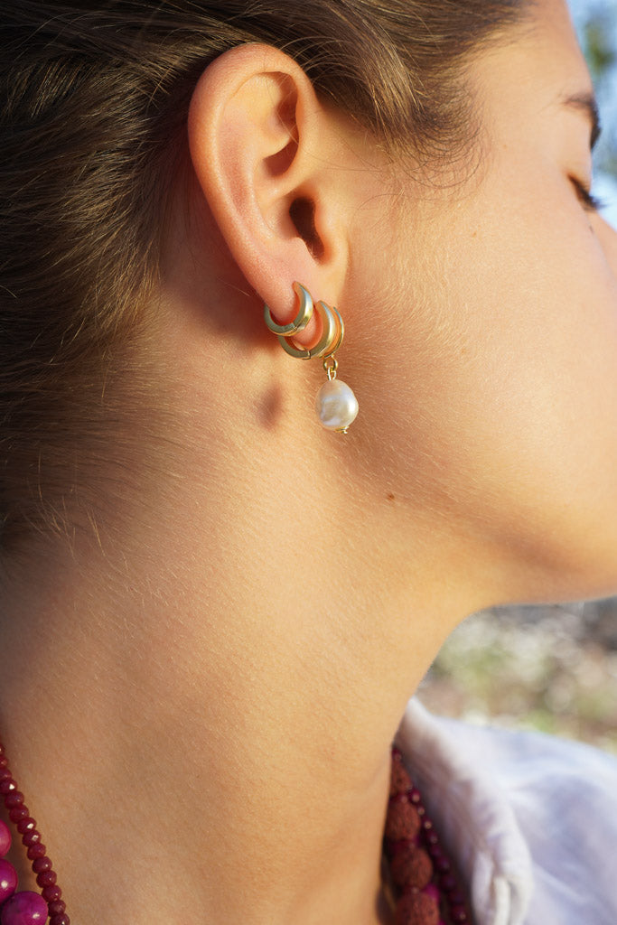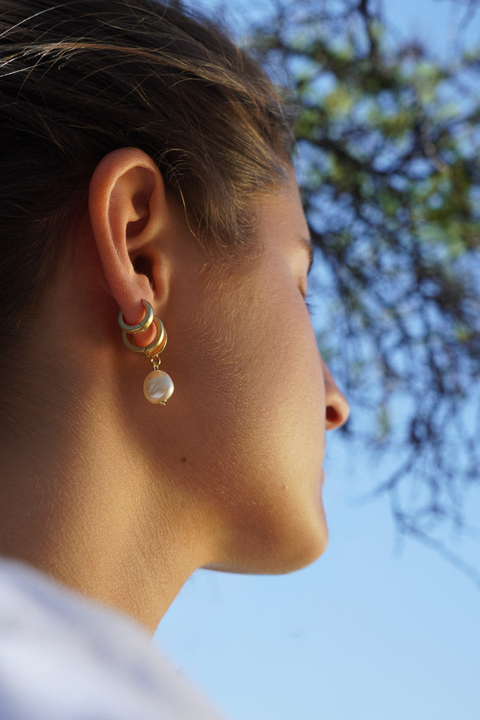 Argollas enchapadas en oro con una perla irregular de fantasía que aporta un toque distinto y muy combinable. Tienen un tamaño cómodo para el día a día y funcionan perfecto tanto solas como acompañando otras argollas.