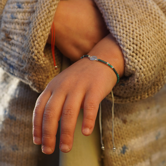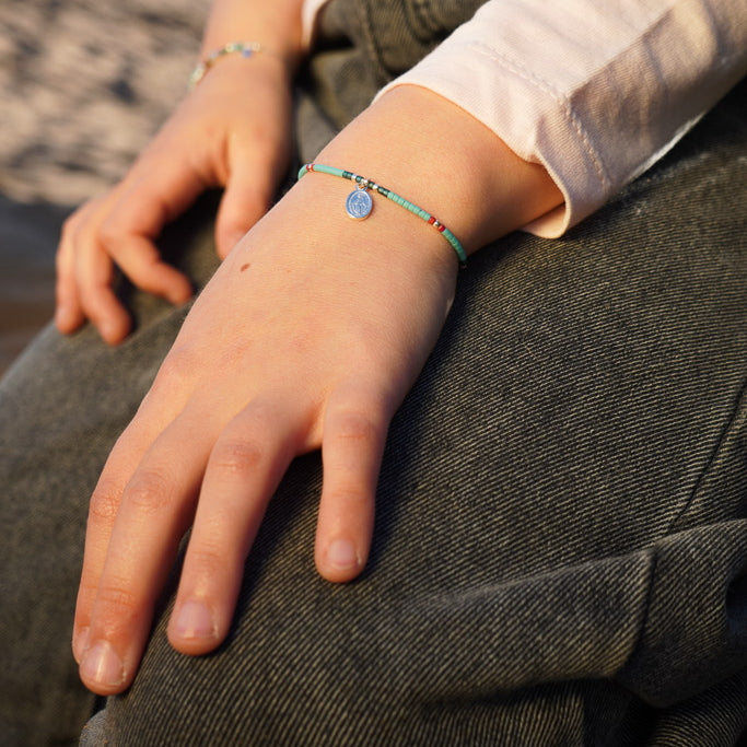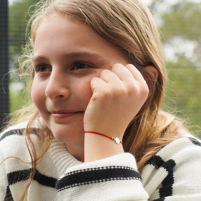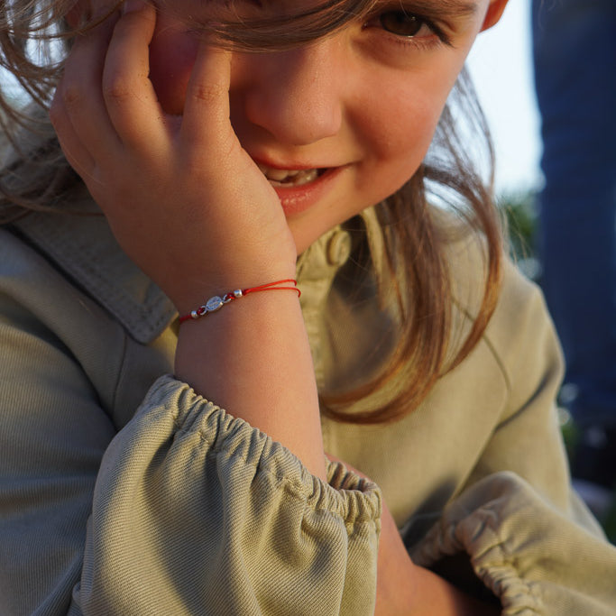 PULSERA MOSTACILLAS ROJAS SAN BENITO PLATA NIÑA