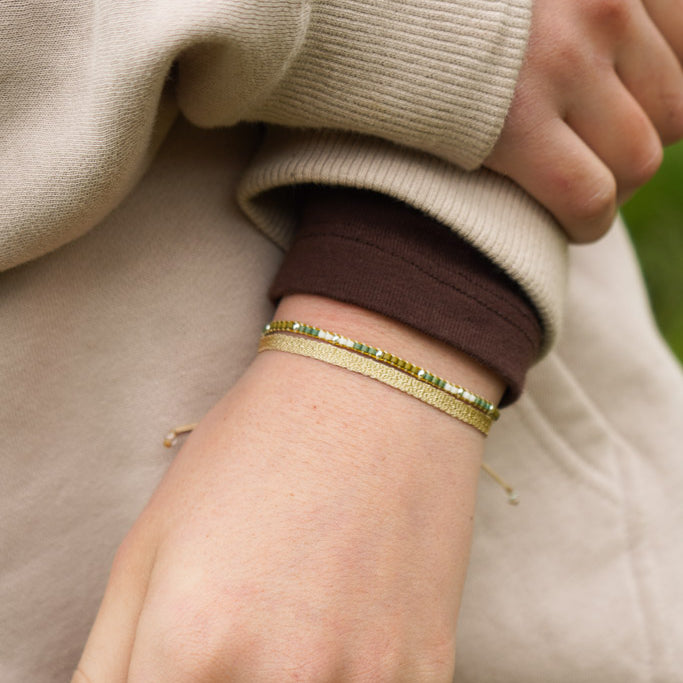 PACK PULSERAS TELAR TRINIDAD VERDE DORADO TEEN