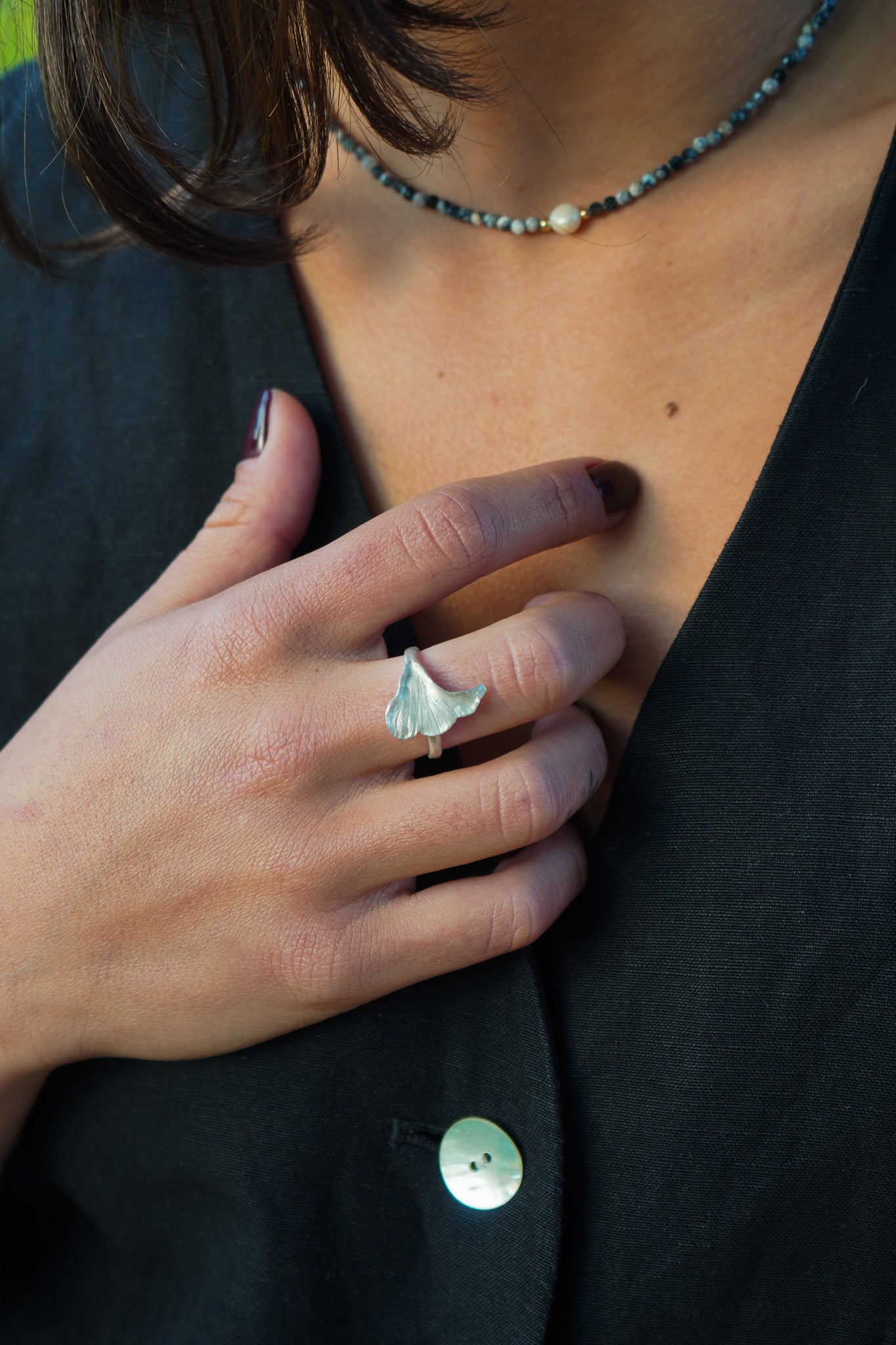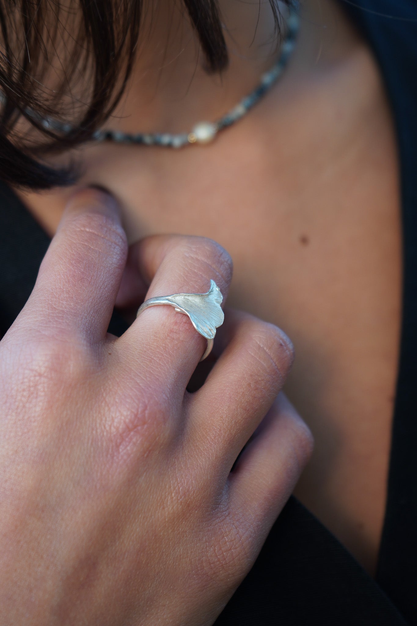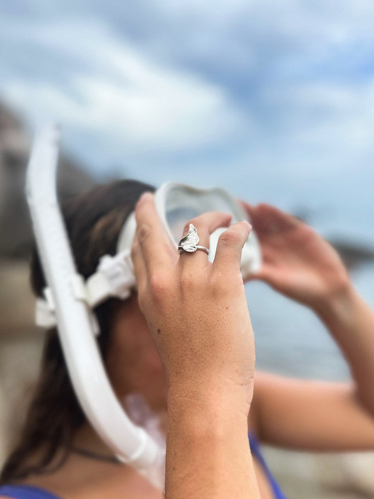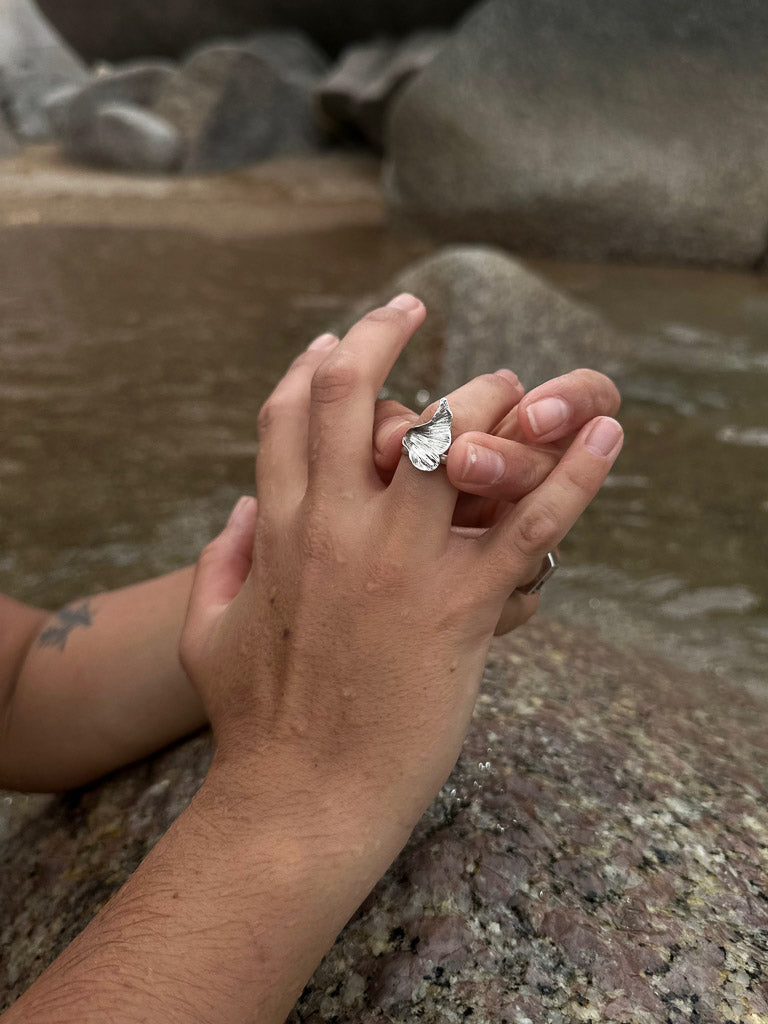 Inspirado en la belleza simple de la naturaleza, este anillo de plata tiene forma de hoja y un diseño envolvente. Su textura marcada lo hace especial y diferente, ideal para quienes buscan una joya con un toque natural. Es ajustable, lo que permite adaptarlo con facilidad.