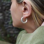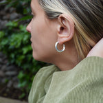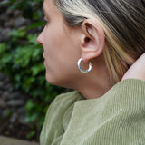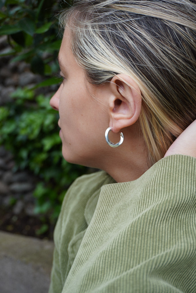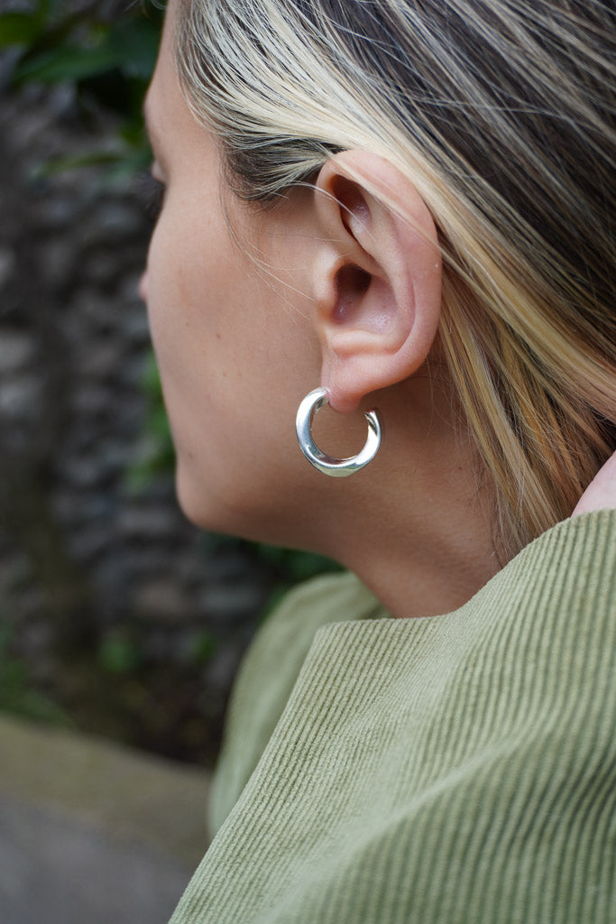 Estas argollas gruesas en plata  son ideales para un look moderno. Su diseño irregular les da un toque único, lo que las convierte en una opción perfecta para aquellos que buscan destacar.
