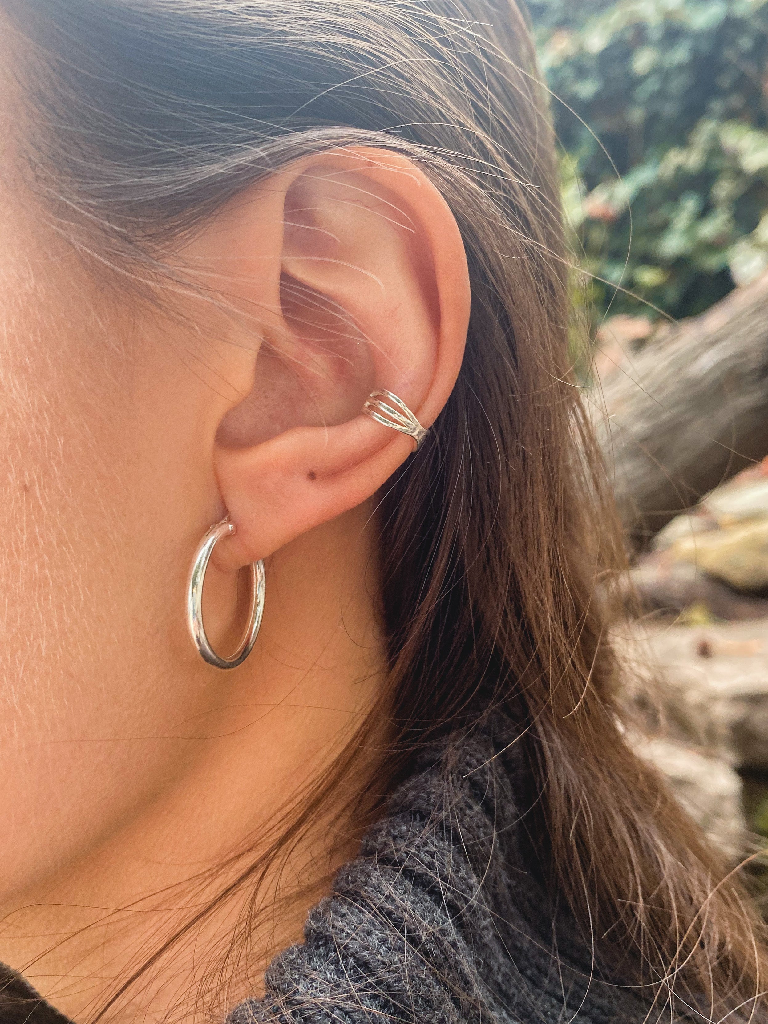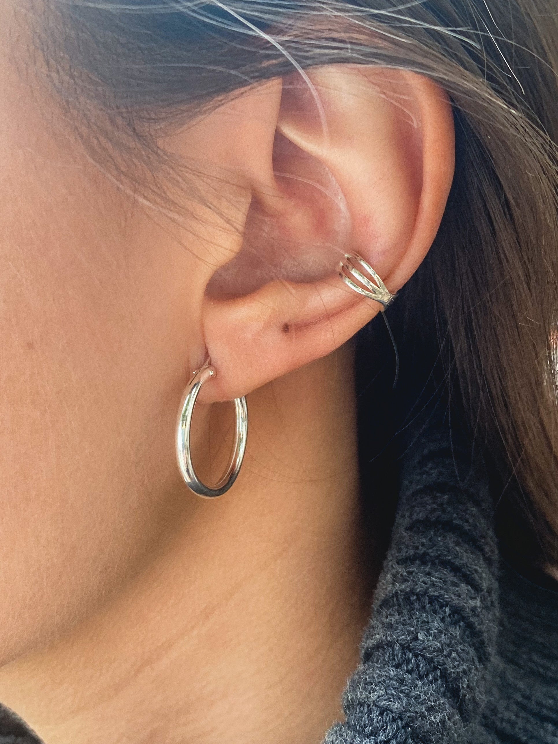 Este Ear cuff de plata tiene un diseño moderno con tres líneas que lo hacen destacar. Hecho con plata de alta calidad, es una pieza elegante y versátil que complementará cualquier atuendo. Cuenta con un estilo único que seguro llamará la atención. ¡Haz una declaración de moda con este ear cuff!