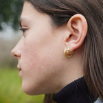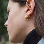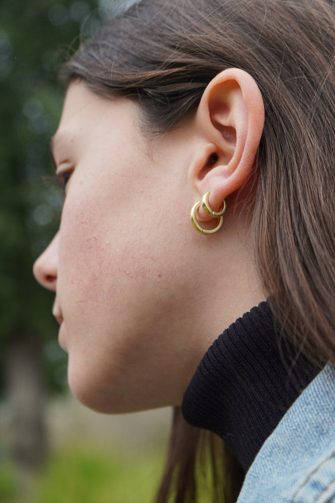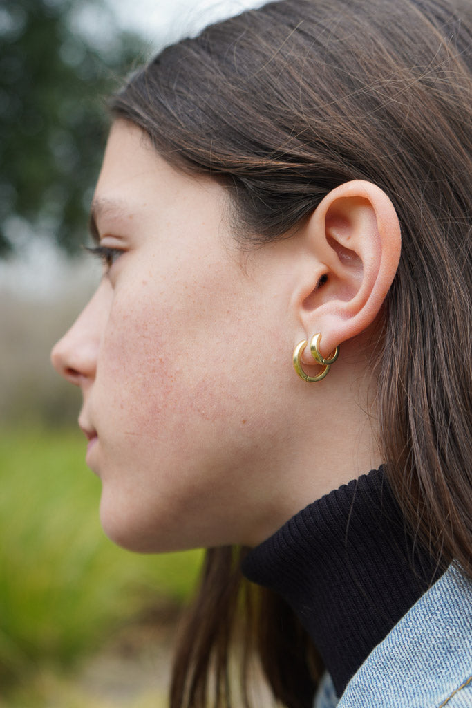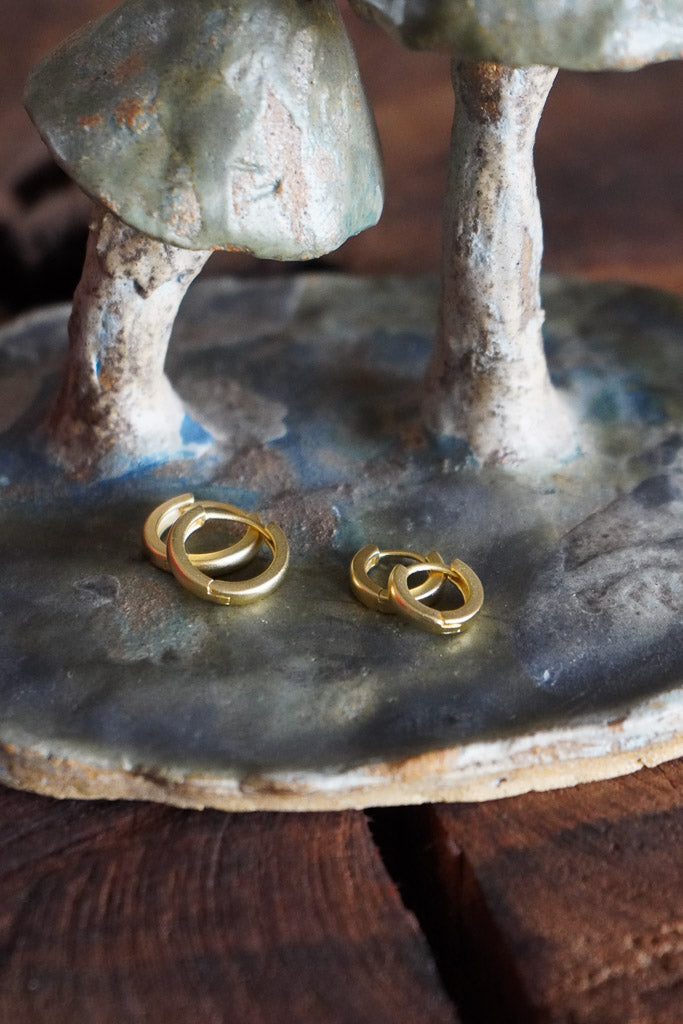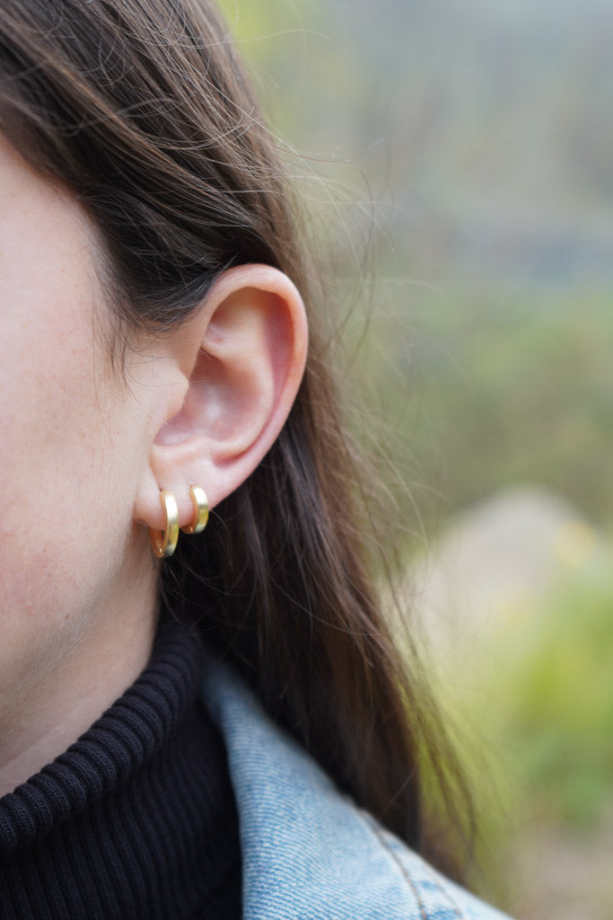 Argollas con acabado mate y enchape en oro, perfectas para darle un toque distinto a tu look. Vienen en dos tamaños, así puedes elegir el que más te guste o combinarlas si tienes más de una perforación.