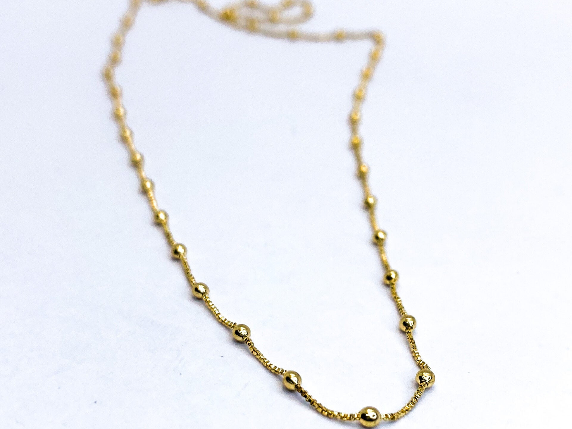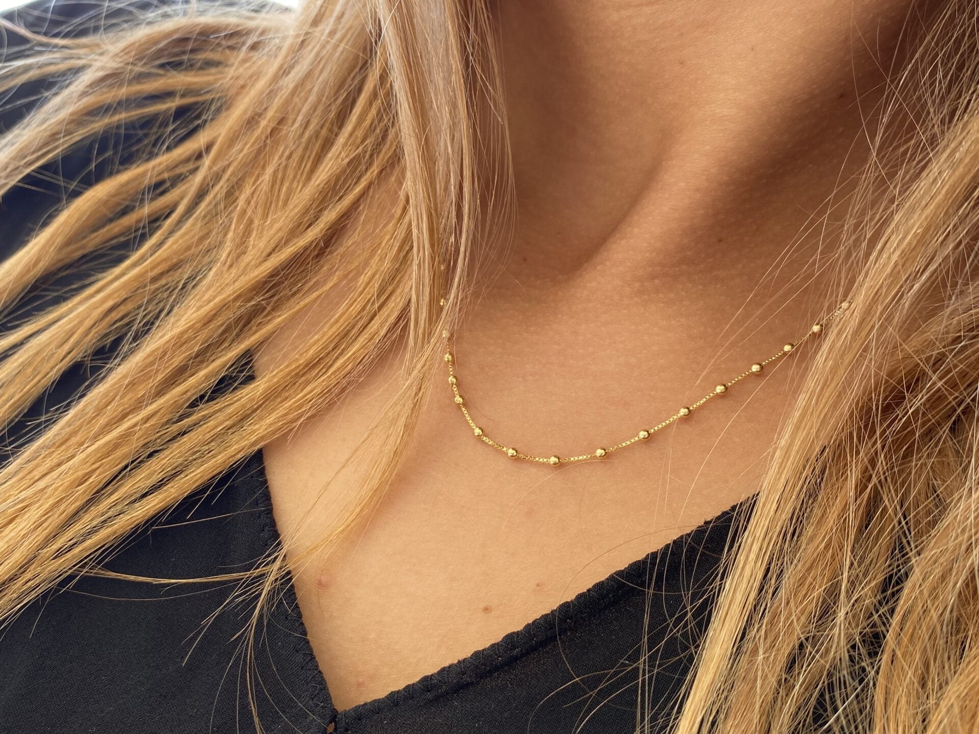 Este collar bolitas es perfecto para cualquier ocasión. Con su diseño elegante y sofisticado, este collar es ideal para complementar cualquier atuendo. Además, su enchape de oro le da un toque de brillo y elegancia. ¡Agrega este collar a tu colección de accesorios y luce siempre increíble!