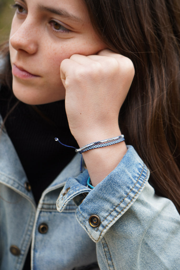 PACK PULSERAS TRINIDAD TELAR AZUL PLATA TEEN