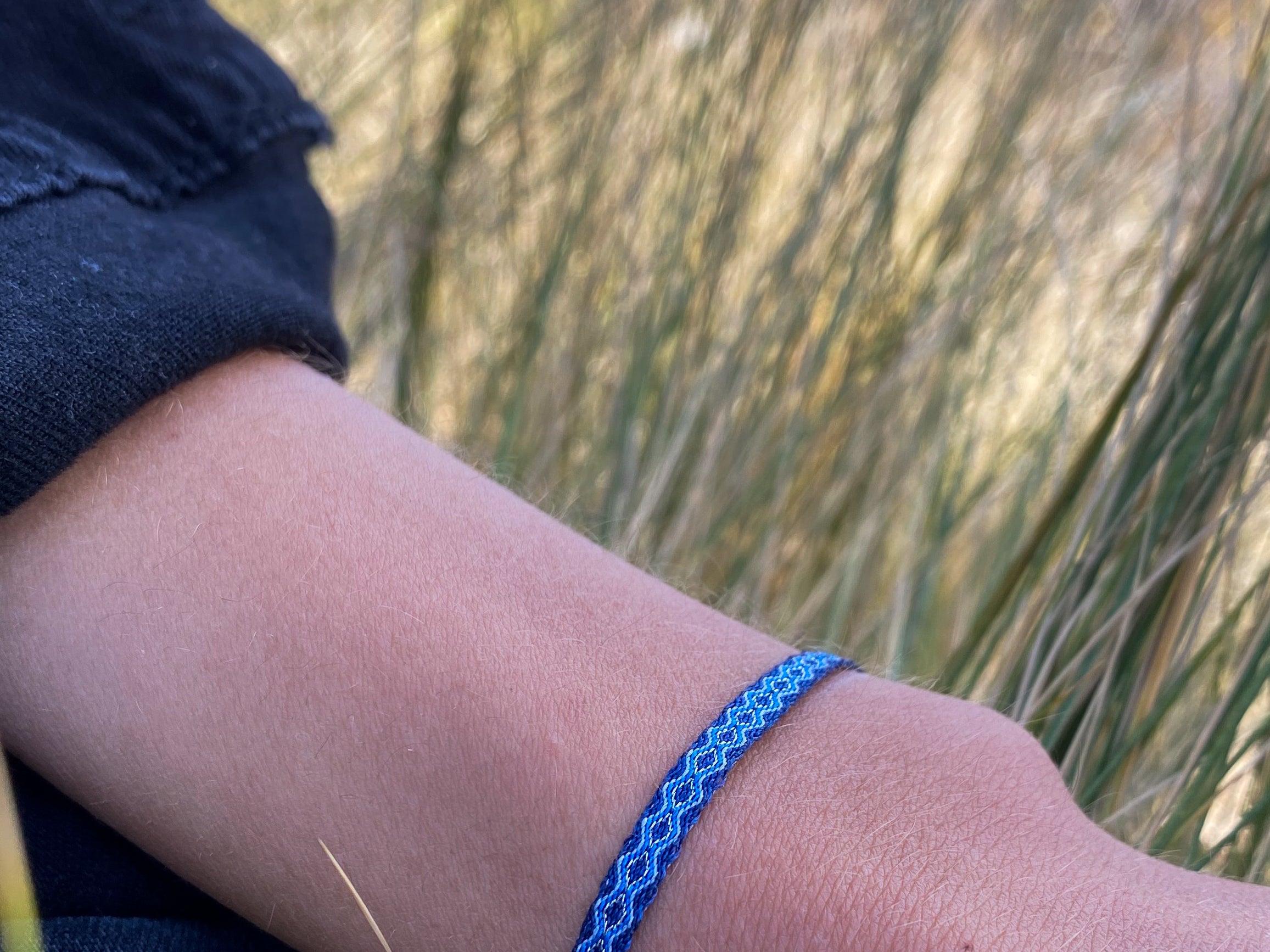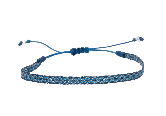 PULSERA TELAR DELGADA ROMBOS AZUL CELESTE