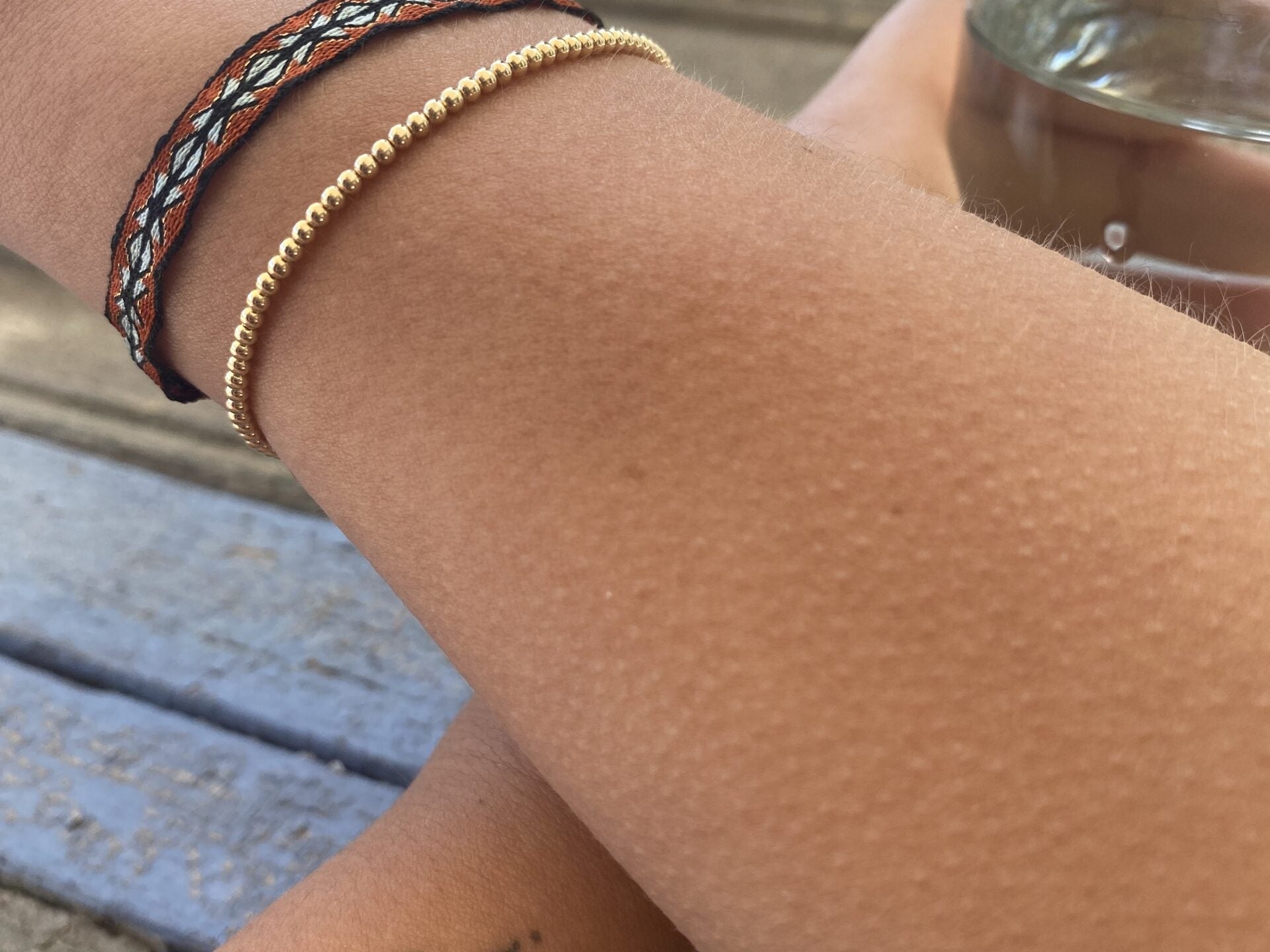 Todas sus mostacillas de goldfilled que es una lámina gruesa de oro de 14 kilates mucho más gruesa y resistente que un baño o enchape.